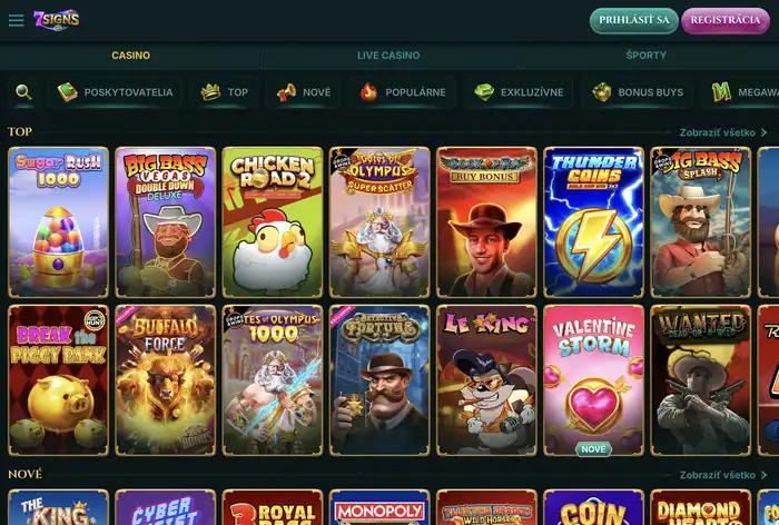 7Signs casino nabízí přes 2000 her od více než 50 herních softwarů. Největší zastoupení mají video automaty. Hry jsou tak různorodé, že se casino rozhodlo je pro lepší orientaci zařadit do různých kategorií. Kromě běžných kategorií jako populární, novinky můžete hry filtrovat podle druhu, tématu, poskytovatele či funkcí. Všechny můžete hrát o peníze nebo zdarma s jejich demo verzí. V nabídce 7Signs naleznete dokonce i virtuální sporty a bingo. Nechybí ani automaty s jackpotem.